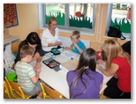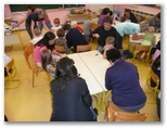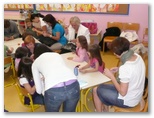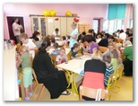 Prvošolci smo ob tednu otroka v šolo povabili starše. Pokazali smo jim, kaj že znamo, peli smo jim in obnovili pravljico o MUCI COPATARICI. Skupaj smo sešili copatke in Copatarica je sporočila, da nam je šlo dobro od rok.
