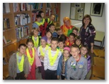 Prvošolci na obisku v knjižnici V tednu otroka že tradicionalno prvošolci prvič obiščejo šolsko knjižnico. V učni uri spoznajo prostor, knjižničarko, pravila obnašanja in ravnanja s knjigami. Letos nam je pri tem pomagala posebna gostja, Pika Nogavička, ki sicer ne obiskuje pouka, knjižnico pa ima rada. Učencem je Pika Nogavička tudi prebrala pravljico O kralju, ki ni maral pospravljati. Sledila je razdelitev članskih izkaznic, tako da so si učenci lahko izposodili vsak svojo knjigo. Na podružnici v Lokavcu so se prvošolcem pridružili še učenci tretjega razreda. Vsi so uživali v družbi Pike Nogavičke.