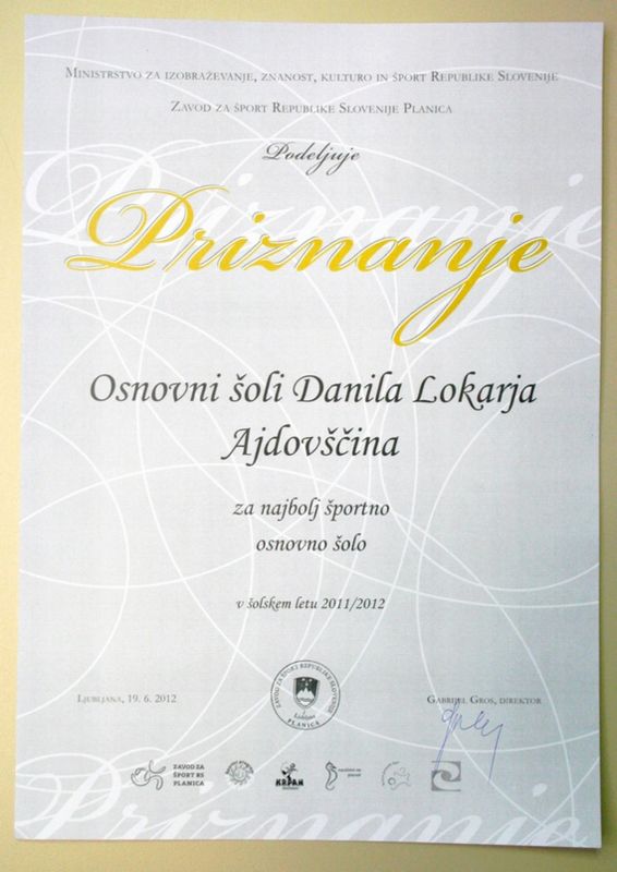 letu je bila OŠ Danila Lokarja razglašena za športno šolo leta. To