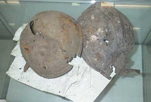 tri poškodovane čelade italijanskih vojakov. Prepoznamo jih po