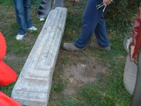 kamniti zid. Pri rušenju zidu so našli marmorno kolono, ki je