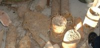na desetine manjših stekleničk, ki so verjetno služile v zdravstvene