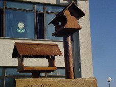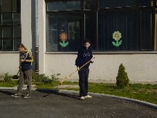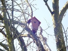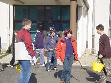 During the video conference a group of pupils did a good job in cleaning the school grounds and nearby orchard. Tree houses for birds were also set up all around the school for the coming winter.