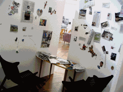 During the visit of the exhibition you may want to have some rest. Have it here, in the room with a view of the part of the exhibition in the big hall. Every day, you can find a daily newspaper with news about events of the previous day. If there are some news which you want to keep in our memory for longer time, stick them to the wall. Your choice of the news will be later included to the file with memory of July-September 2005.