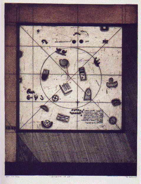 Grafika št. 65 1971 barvna jedkanica 64 x 50 cm