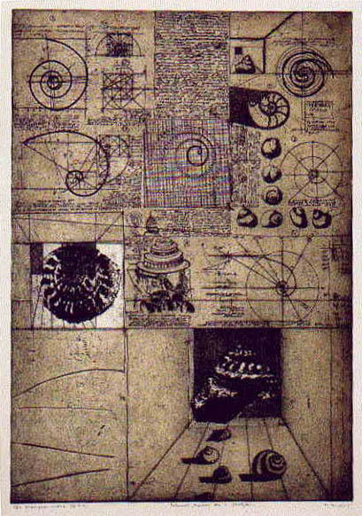 Tokrat precej več o školjki II 1972 jedkanica in barvna akvatinta 84 x 50 cm