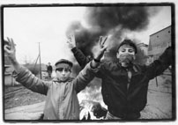 Vsaki novi dan, ki je noč, je zamrznjen v razstavljenih okruških časa … v razsutem mozaiku sivo-rjavo-zelenih podob, prebodenih s svetlobo usmerjenega pogleda … z zakrvavljenimi kapilarami na mrežnici neprespanih noči … oko, ki se reži … kamera beleži neznosno gosti zrak, ki visi nad zapuščenimi koruznimi polji … preživljati dneve, tedne, jesti, spati z vojaki, se z njimi premikati po terenu … izguba nujne distance do vojskujočih se strani je lahko usodna … nevarni občutek, da si samoumevni člen v usodnem kolesju neusmiljene mašinerije … da si del njih … po begavih brezpotjih … glasni vdihi in izdihi … nato čakanje, prisluškovanje … zveze, kontakti … vojaška propustnica kot Mefistov potni list skozi sobane pekla … vonj zaostalega smodnika … smrad kanalizacijskih jaškov kot obnoreli obet vhoda v Sarajevo … izziv, namig, intuicija pogube… skrivni prehod za enklavo Goražde.