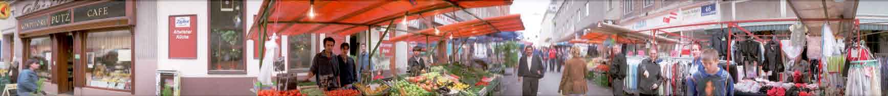 Markets of the world , Brunnenmarkt - Wien, 2004, Serie „180 degrees EAST-180 degrees WEST“, C-Print, 30 x 300 cm