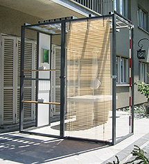 Na konstrukcijo iz zvarjenih jeklenih profilov Makše podobno kot pred njim Giacommeti pripne različne označevalce, ki jih prepoznamo kot stilizirane dodatke naših bivališč: oblazinjeno pohištvo, police, predali in fotografija. Uporaba teh vsakdanjih predmetov potencira občutek kontinuitete med gledalčevim svetom in ambientom skulpture. Ponekod loči zunanji in notranji prostor z žaluzijo, ki ima tu dvojno funkcijo: je konstrukcijski element, stena in v vsebinskem smislu označuje okno in tako ostreje definira Makšetovo skulpturo kot interpretacijo sodobnega stanovanja. Žaluzije uporabljamo, da zastremo okna, da preprečimo soncu, da pripeka v notranjost, da omejimo pogled radovednim sosedom, da vzpostavimo intimen prostor bivališča. Preden je žaluzija ready made, je del skulpture in ima točno določen pomen: konstrukcijski in vsebinski.