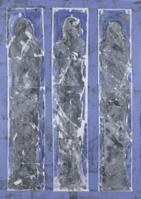 Valentin Oman, Okameneli spomini, mešana tehnika na platno, 200 x 145 cm, 2002