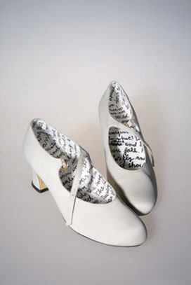 Ksenija Čerče, Brez naslova, 2004, tehnika – rokopis v čevljih (foto Marjan Smerke)