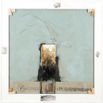 Štefan Marflak, iz cikla Ta pot - ta slika III, jajčna tempera, kovina in fotografija, 100 cm × 100 cm, 2008 (Foto Tomo Jeseničnik)