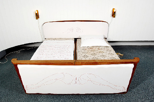 »k.o.«, Homage to Margaret Atwood, 2003 (double bed, pillow,