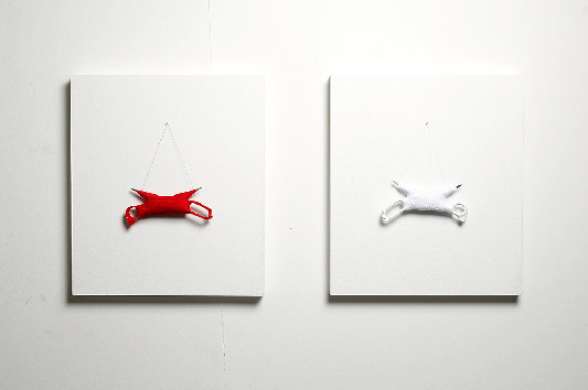 V delu Škarje je avtor konstiturajočima objektoma dela, in sicer