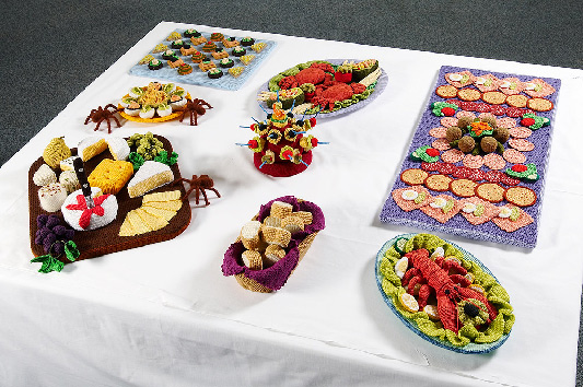 upodobitev hrane umetnice, ki ustvarja z zakvačkano nitjo že