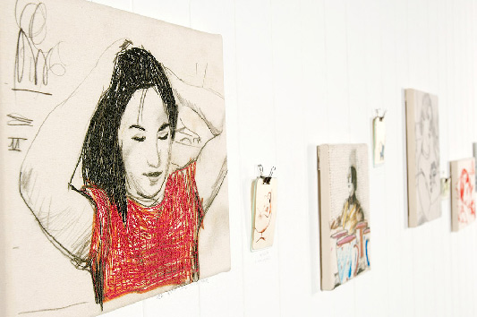 Pas de deux, 2005 (acrylic and thread on canvas), several works,