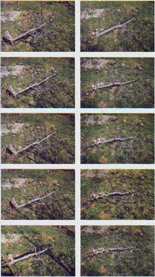 Drevo se postopoma razreže na 10 - 15 cm dolge kose. Stanje se dokumentira po vsaki opravljeni fazi razreza.