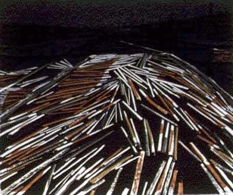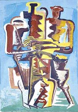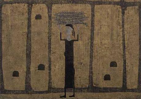 Vladimir Makuc (1925): Woman with Firewood, colour etching, 1960 |