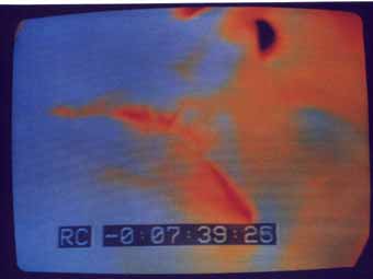 svobodnim, nekontroliranim in B-občim, splošnim, urejenim, zunanjim, predvidljivim, hladnim. Tema obeh je telo: A-koza, svobodno, nepredvidljivo, nekontrolirano gibanje in B-sence teles, odsevi, urejen ritem. Vizualizacija: A-ekstremni close-upi telesa v gibanju na belem ozadju, ki zaradi specifične osvetljave in montaže spomnijajo na plamene (barvna skala topla: oranžna, rumena, rjava); B-celopostavne figure ljudi na izsušenih puščavskih tleh, ki delujejo šablonsko oziroma shematizirano, ker nikoli ni videti vira sence (preganjajo se na levo in desno po ekranu in so obrnjene na glavo; barvna skala: hladna: drap, siva). Zvok: A-ogenj, B-stopinje, koraki.«(Nataša Prosenc)