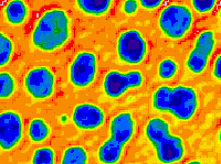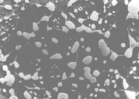The strength of nickel base alloys primary depends on size and distribution of gamma prime percipitates. The left image show gamma prime percipitates in the carbon extraction replica of the nickel alloy Nimonic 80A. Percipitates has a avarage diameter of 300 A. EDS microanalysis shows that the composition of this gamma prime percipitates is 11.99 wt.% Al, 13.36 wt.% Ti and 74.82 wt.% Ni and is very closly to the stehiometric composition of Ni