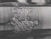 In cold steel rolling, the rolls have palyed the dominant role in rolling technology. During cold rolling are on cold rolls appeared defects like cracks, grinding network, spalling, hair cracks, crushing of roll surface, welding spots, roll failure, corrosion pits, retempered structure, etc. The image shows tipical defect of crushing of the roll surface on roll made from steel with 6 wt.% of Cr and diameter of 129 mm.