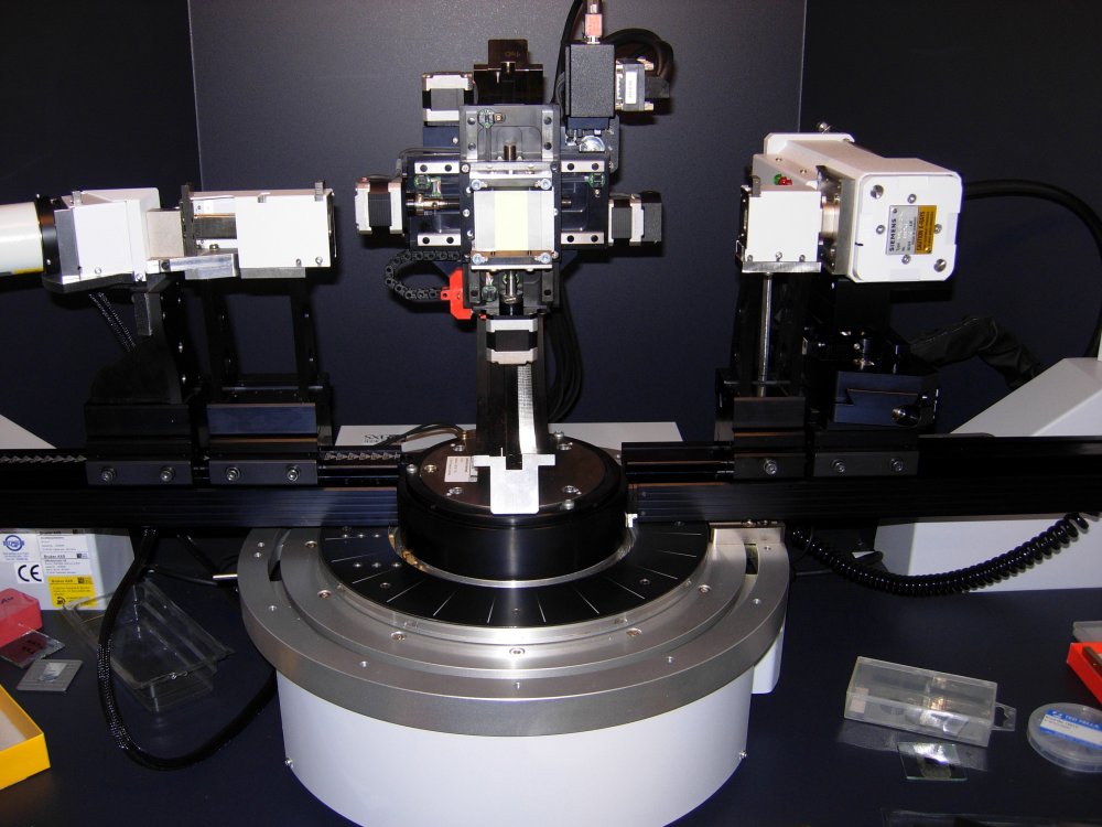 The detector is a NaI dynamic scintillation detector with a maximum count rate of 2 x 106 s-1 (although it should not be exposed to in excess of 5 x 105 s-1 for periods longer than about 1 second). A computer controlled absorber is mounted directly in front of the detector and is used to attenuate the beam by about 2 orders of magnitude. To change the angular resolution several slits (0.05 to 2 mm) are available to be placed in front of the detector, as are a set of Soller slits to allow for small samples. Attenuators made of Cu, Fe and Ni are also available and can be manually placed in the beam, by inserting them into the slit holders in front of the detector. The detector electronics are capable of a count rate up to 3 x 107 s-1.