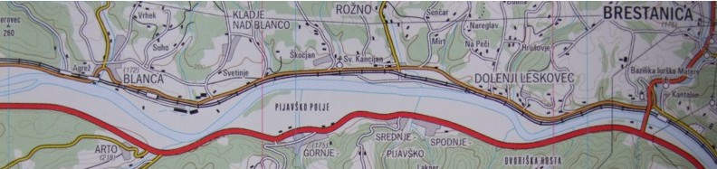 Izsek iz pregledne karte z nekajkrat manj orientacijskih podatkov kot leta 1996.