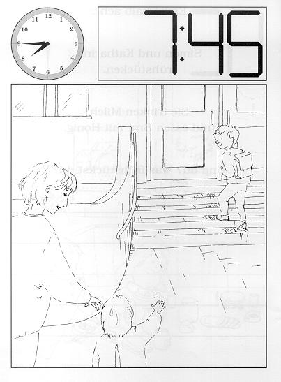 Peter: Ich gehe zu Fuß. Inge: Ich gehe mit dem Bus. Hans: Mein Vater bringt mich in die Schule. Maria: Ich gehe mit dem Zug. Rolf: Ich fahre mit dem Rad.