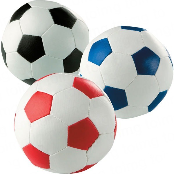Three black, white and red footballs.