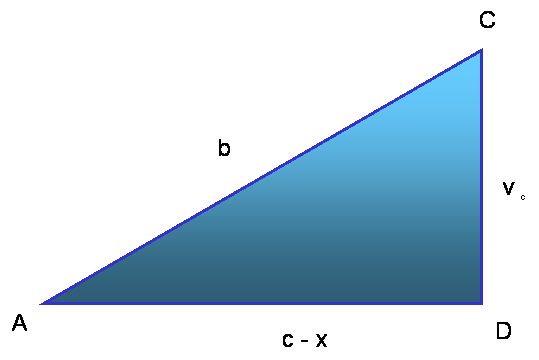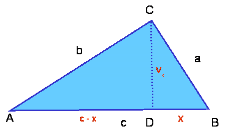 višino v AD = x in BD = c - x V pravokotnem trikotniku ADC je po Pitagorovem izreku :