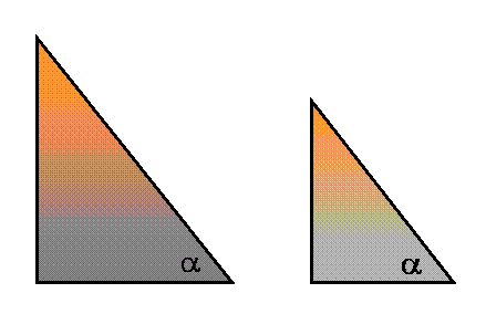 OSNOVNI POJMI Narisana sta dva pravokotna trikotnika s kotom a = 60º! Prvega označi z A, B, in C., drugega pa z A1, B1 in C1. Ker imata oba trikotnika kot ob oglišču C in C1 pravi kot in enak kot ob oglišču A in A1, sta tudi kota v ogliščih B in B1 enaka.Slika: