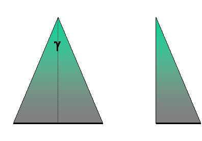 cos a = (c/2)/a c = 2a . cos a c = 24 . cos 670 35' c = 24 . 0,38133 = 9,15192 c = 9,15cm sin a = v /a v = a . sin a v = 12 . sin 670 35' v = 12 . 0,92444 v = 11,09328 v = 11,1cm 2. Reši enakokraki trikotnik s podatkoma c = 10cm, g = 320 18'! ( a = ?, a = ?, v = ? )