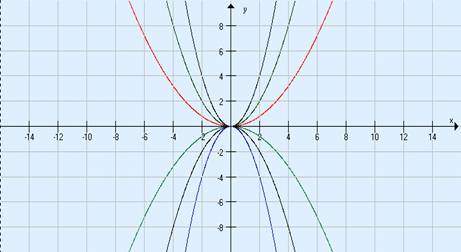 Vsak x2 moraš pomnožiti z a. Če je a > 1 bodo vse funkcijske vrednosti povečane, pri a < 1 pa zmanjšane, vendar še vedno pozitivne. ( Graf je obrnjen navzgor) Če je a < 0, torej negativen bodo vse funkcijske vrednosti imele negativen predznak (nasprotni predznak od funkcijskih vrednosti ax2). Graf bo obrnjen navzdol.