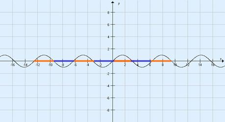 Monotone, periodične in sestavljene funkcijeČe funkcija na danem intervalu ves čas narašča ali ves čas pada, pravimo, da je monotona na tem intervalu. Taki funkciji sta f(x) = x in f(x) = - x na celotni realni osi. Tudi funkcija f(x) = x2 je monotona na intervalu (¥ >x > 0 ) in na intervalu ( 0 >x > - ¥ ). Ni pa monotona na celotni realni osi ( ¥ > x > - ¥ ). Funkcije, pri katerih se vse funkcijske vrednosti v enakih presledkih neodvisne spremenljivke ponavljajo, imenujemo periodične funkcije. To zapišemo f(x +a) = f(x), kjer je a perioda funkcije. Take funkcije so f(x) = sin x,