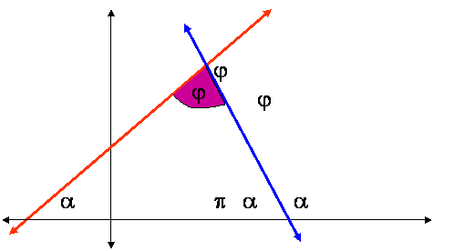 Zunanji kot a2 trikotnika M1 M2 P je enak vsoti notranjih nepriležnih kotov a1 in j: a2 = a1+ j. Med kotoma a1, a2 in j, ki ga oklepata dani premici je zveza: ( j + a1 + p - a2 = p Þ j = p - a1 - p + a2 )