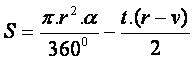 Njegovo ploščino izračunaš tako, da od ploščine izseka, ki pripada loku l, odšteješ ploščino trikotnika ABS, ki ga tvori tetiva AB = t z dvema polmeroma r.