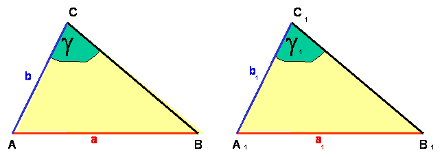 4. skladnostni izrek AC(b) @ A1C1(b1) AB(a) @ A1B1(a1) BC(g) @ B1C1(g1)