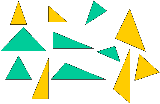 2.Ali so dani trikotniki skladni? Zapiši številke skladnih trikotnikov s trikotnikom