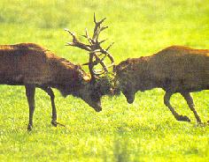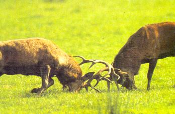 NAVADNI JELEN Odrasli samec ima veliko in razvejano rogovje, ki ga krasi. Samci si samice priborijo tako, da se bojujejo z rogovjem,.... ... pri tem pa poskušata drug drugega odriniti v stran.