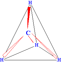 PRIMER NEPOLARNE MOLEKULE Molekula metana vsebuje štiri vezne elektronske pare, ki se med seboj enakomerno odbijajo. Metan ima tetraedrično zgradbo, ker so elektroni v veznih parih najbolj oddaljeni drug od drugega. Molekula ja nepolarna, kljub temu, da vsebuje štiri rahlo polarne vezi. |