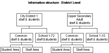 Model desktops have been created for and adapted to each category of user to avoid too many icons. Areas that are of no interest to the user or where the user is not allowed are not visible at all. Accordingly teachers and students at compulsory schools may continue to the district area and teachers and students at upper secondary schools may continue to the their area.