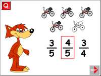 kako: narisana je skupina objektov, nekateri so označeni. Ugotoviti je potrebno, kateri ulomek ustreza sliki. Naslednja naloga: predstavljen je ulomek, na sliki je potrebno označiti koliko delov moramo vzeti.