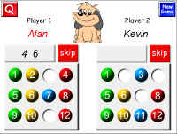 kako: Igra za dva igralca. Oba dobita kartonček s števili od 1 do 12. Nato izmenično dobivata naključne pare števil. Sedaj lahko klikneta na kroglico s številom, ki je bodisi vsota, bodisi razlika teh dveh števil. Kroglica izgine in na vrsti je soigralec. Če na voljo ni nobene ustrezne kroglice, klikneš na gumb SKIP. Zmaga tisti, ki prej izprazni svoj kartonček.