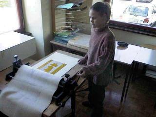 Projekt Virtualna šola je že bil predstavljena na lanski konferenci MIRK. Tokrat bom podrobneje spregovorila o virtualni likovni učilnici. Pred izvedbo smo skrbno načrtovali vsebine. Prispevke za virtualno učilnico smo z učenci pripravljali v klasični likovni učilnici. Odločila sem se, da predstavimo eno od zahtevnejših grafičnih tehnik t. j. večbarvni linorez. Različne faze izdelave linoreza smo posneli z digitalnim fotoaparatom. Kolegica Viljenka Šavli je oblikovala spletno stran, kjer je opisan in slikovno predstavljen postopek od skice do izdelka. Pripravili smo tudi interaktivne vaje o grafični umetnosti. Organizirali smo video konferenco z OŠ Srečko Kosovel iz Sežane, v kateri so naše učenke izmenjale izkušnje in predstavile svoje izdelke sežanskim vrstnikom, ki so pripravili gradivo s področja kiparstva.