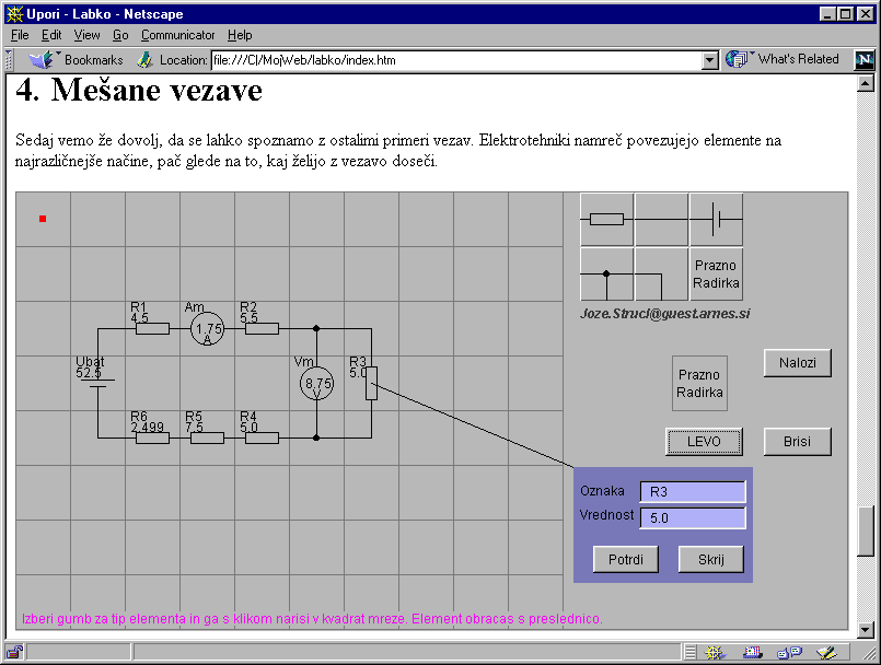 svetovni splet, poizkusKeywords: simulation, DC circuits, teaching, electrical engineering, applet, computer, Internet, experiment
