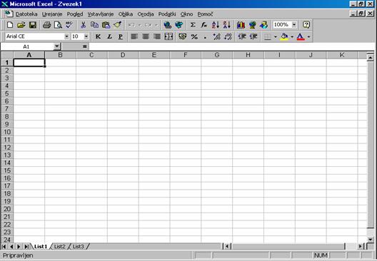 c) MICROSOFT EXCEL (Program za delo s preglednicami)