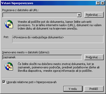 Povezave z datoteko ali URL