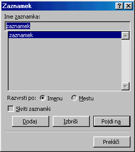 Vstavlanje / Zaznamek