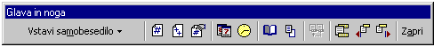 Če pa želimo v prostor za glavo in noge strani vnašati besedilo (ali slike), izberemo "Pogled/Glava in noge".