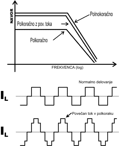 nismo izgubili momenta motorja v tem načinu, če ga primerjamo s polnokoračnim.